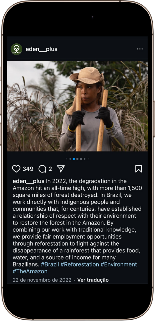 For hundreds of years, communities in Brazil have been living off the land. As logging and agricultural practices degrade Brazil's forests, their ability to survive off its natural resources significantly decreases. Across different regions and states, we are working directly with traditional groups, indigenous people, and Quilombola communities to reforest nearly 30,000 hectares (115 sq. miles, 300 sq. kilometers) in the Amazon, the Cerrado, and various mangrove estuaries to help restore ecosystems while creating financial opportunities for local communities.