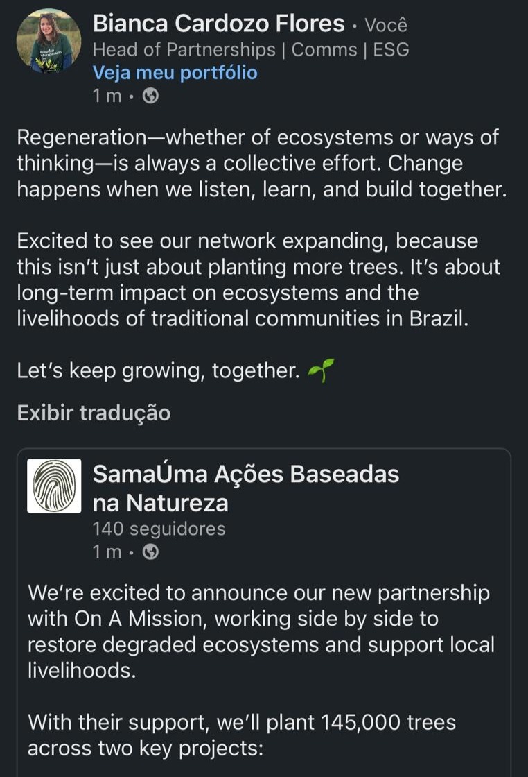 From the Amazon rainforest to mangrove estuaries, SamaÚma's work restores balance, supports biodiversity, and empowers communities to lead the way toward a regenerative future.